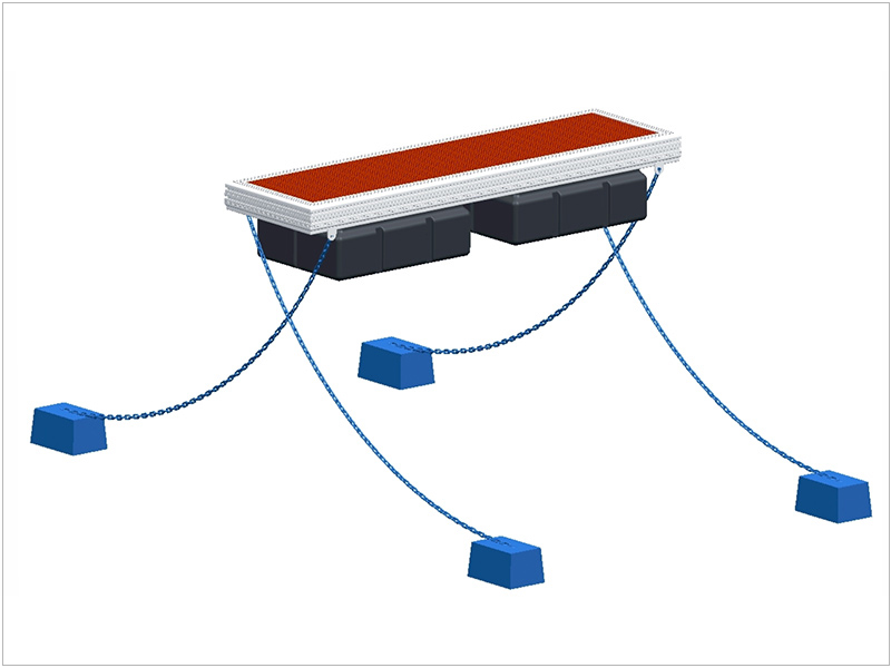 Le ponton est ancré par le câble élastique en fibre de caoutchouc et le béton sous le fond marin.Le dispositif sealex est très solide et stable, de sorte que le pont flottant conserve toujours la même position horizontale et la même hauteur de franc-bord lors du changement de marée, et peut ajuster la flottabilité dans la plage de 70 %.